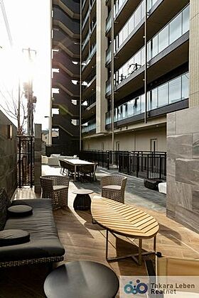 共用部では、大空のもと、ゆっくりと流れる時を楽しみながら過ごすことのできるプライベートガーデンがございます。休日は気の合う仲間と一緒にティーパーティなどを楽しんでも良いですね。