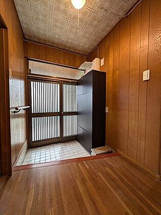窓から光が差し込む、明るい玄関です。大きなシューズクローゼットがあり、収納が充実しています