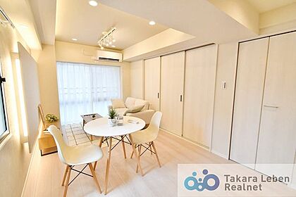 LDK約11.2帖。隣接する洋室の間仕切りを開放して約17.1帖の広々とした空間にすることも可能です。