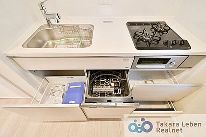 ビルトイン食器洗浄機の為場所を取らず忙しい朝も快適になります。また、収納はスライド式の為、奥にしまい込んだ調理器具等の取り出しもスムーズに行えるため、調理がはかどりますね