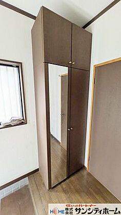 お出かけ前に全身チェックできるミラー付きの下駄箱で玄関周りがスッキリ片付きますね!