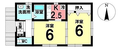 全居室6帖の2Kの間取りです。おひとりやご夫婦でのお住まいにちょうど良い広さです。