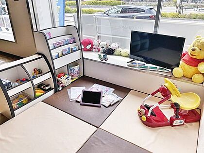 ■キッズスペースがあるのでお子様も退屈せずに過ごせます。■ぬりえや絵本、おもちゃ等置いています。人気はアンパンマンの乗り物♪■DVD鑑賞も可能です♪■その他おむつ替えスペースあり!