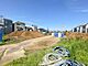 青空の下開放感のある土地が広がっています。周辺には住宅が立ち並び落ち着いた雰囲気が感じられます。