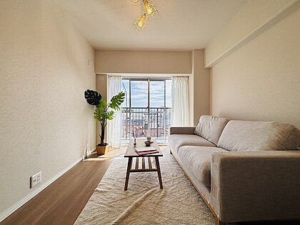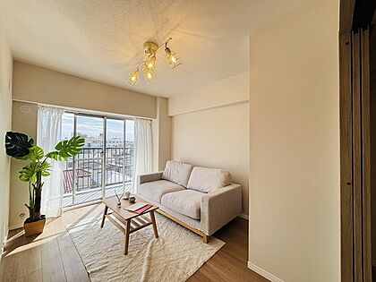 大きな開口部から明るい光が差し込む、日中の室内の明るさがこの部屋の魅力です。
