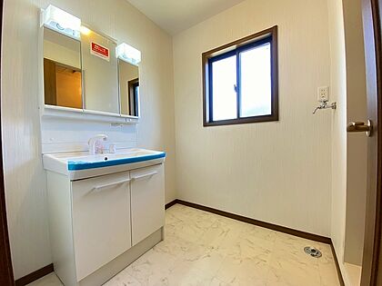 洗面化粧台は清潔感の漂うホワイトをベースカラーに、シンプルなデザインで。