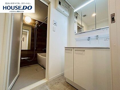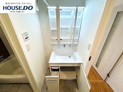 【家族みんなの使いやすさ】お手入れしやすく使いやすい3面鏡付きの洗面台。収納スペースも広く、洗剤や掃除道具をたっぷりと収納できます。