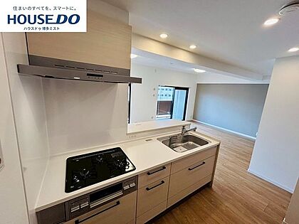 【今日のゴハンは何食べたい?】カウンターキッチンは家事をしながらでもリビングの様子が見えるので、お子様から目を離さず安心です。お料理をしながらリビングの家族と会話が弾みます。