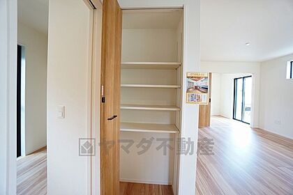 •  ファミリークローク・ウォークインクローゼット・パントリー・各階廊下収納あり。 リビングと隣接する洋室を一体利用すると広々約23帖の大空間です^^