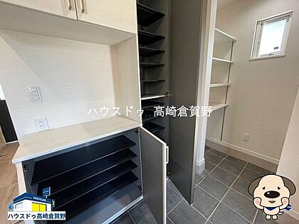 棚付きのシューズインクローゼット、シューズボックスつきの玄関◎