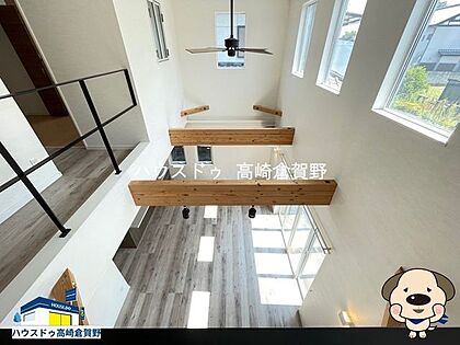 リビング上部に吹き抜けを採用し、天井が高く開放感と採光性を両立します(*^^*)