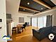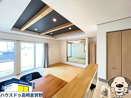 リビングは黒の天井と見せ梁が特徴的で、モダンでありながらも温かみのあるデザインが広がっています◎
