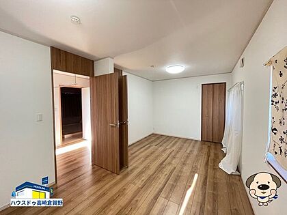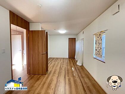 広々とした空間の子供部屋。現在は仕切りがなくオープンなレイアウトですが、扉を二つ設けているため、将来必要に応じて2部屋に分けることが可能です♪
