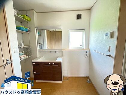 洗面所には豊富な収納棚があり、 必要な洗面用具やタオル、化粧品などをすっきり収納できます◎