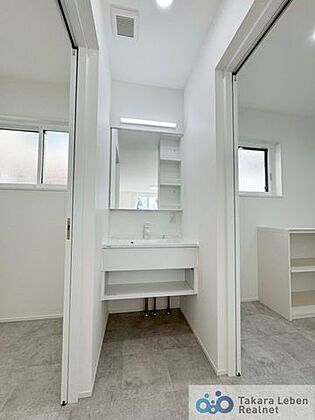 十分な広さと収納スペースを設けた洗面室では、毎日の身支度も快適に行うことができます。
