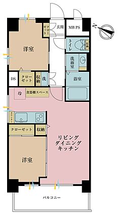 2LDK、専有面積45.12?、バルコニー面積5.59?