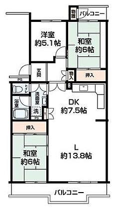 全居室に窓があり採光、採風に優れた住まいです約21.3帖の広めのリビングダイニングキッチンと洋室が1部屋、和室2部屋あります。是非、一度ご覧ください。