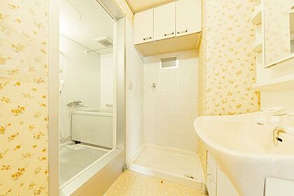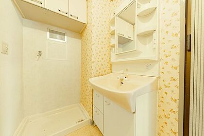 洗濯機置き場の上部には収納があります。水回り用品や洗濯用洗剤、清掃道具など生活感の出やすい水回り用品をすっきり収納できます。また、ランドリーラック等を利用すればデッドスペースも有効活用できます。