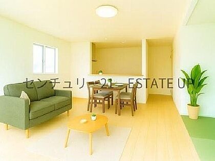 【リビング】リビング空間にキッチン。みんなで食事を楽しめる空間。※ホームステージングしているイメージ図です。