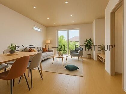 【リビング】お好きなインテリアなどを飾って、ご家族で安らげる癒しの空間をお作りいただけます。※ホームステージングしているイメージ図です。