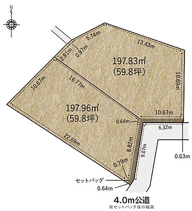 | 土地面積/坪(坪単価) | 197.83m2(登記簿)/59.95坪(41.40万円) | 代表的な接道 | 一方 公道 南 4m ※詳細は備考欄をご確認ください |