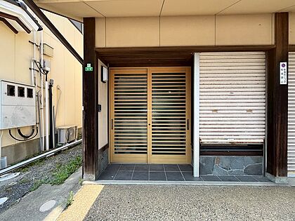 道路側店舗裏側。2階居宅部分に入る玄関があります。