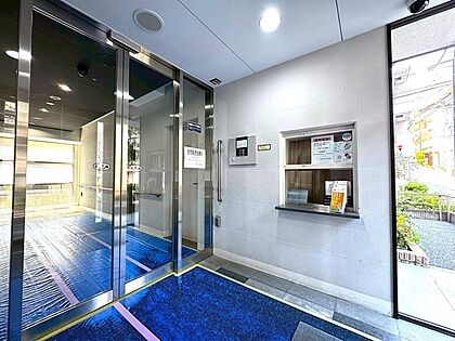 オートロックやモニタ付きインターホンが採用されているマンションです。防犯面に配慮されています。【館銘板】