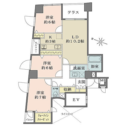 2階部分、通風良好な角住戸。キッチンからバルコニーへ出入りが可能です。ウォークインクローゼット有。