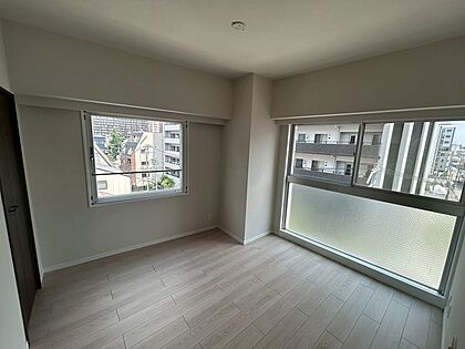 東側の約6帖の洋室は、東・北側の2面採光設計です。全居室フローリング仕様で、お手入れがしやすいです。【東側洋室/約6帖】