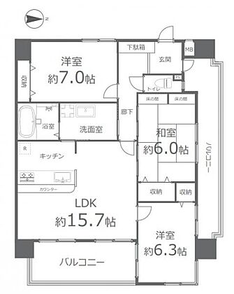 | 間取り | 3LDK | 専有面積 | 80.44m2(壁芯) |