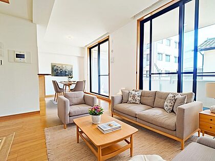 大きな開口部から明るい光が差し込むリビング。日中の室内の明るさがこの部屋の魅力です。