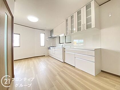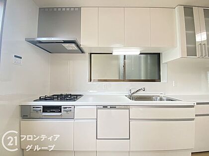 手荒れを防げる食洗器と、3口コンロ付きキッチン。家事効率がアップして、家族との団らんや趣味の時間にあてられますね。