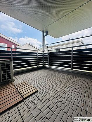 陽光がたっぷりと降り注ぐルーフバルコニー仕様!日当たり良好・ワイド設計でご家族分のお洗濯物も気持ちよく乾きます♪急な雨も安心で、テーブルなどを飾ればカフェ体験もお楽しみいただけます♪