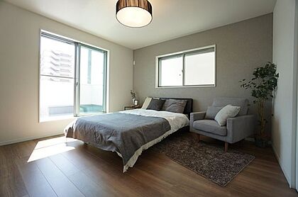 【施工例/洋室】スタイル:カームグレイッシュさまざまな色味と相性の良いグレーのグラデーションで、やわらかく優しい印象を持たせてくれる、心安らぐデザインです。