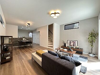 【施工例/リビング(ハイサイドライト)】外からの視線を遮りつつ、自然光を室内に取り込むハイサイドライトを採用したリビング。効率的に空気を循環させることができるのもメリットです。