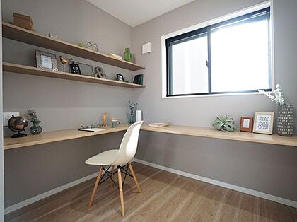 【施工例/書斎】憧れの書斎は在宅ワークや趣味のお部屋としてもご利用可能です。集中できる空間があると家族の時間と一人の時間にメリハリをつけることができ生活がより豊かなものになりますね