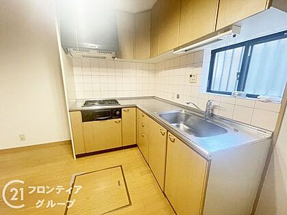 明るく広々としたキッチンは、料理がしやすい動線を考慮した設計。使い勝手の良い収納が豊富で、効率よく作業できます。シンプルなデザインながら機能性を兼ね備え、快適な調理空間を提供します。