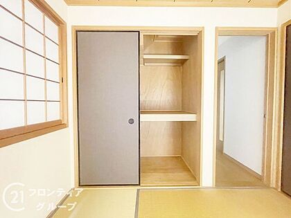 趣のある和室には大容量の収納スペースが確保されており、布団や季節の家電、普段使わない生活用品までしっかり収まります。物が外に出にくく、空間がすっきりと保てるのも嬉しいポイントです。