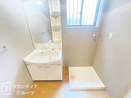 明るく開放的な洗面空間は、家族みんなが使いやすい配置とゆとりのある設計。洗濯機置き場も近く、家事の効率もアップ。落ち着いた色調と使いやすさを兼ね備えた空間で、日々の暮らしをスマートに演出します。