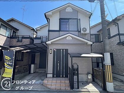 落ち着いた色合いとモダンなデザインが調和した戸建外観。道路からの見通しも良好で、しっかりとした門構えが安心感を与えます。周囲との距離も程よく確保されており、静かな環境と調和した佇まいが魅力です。