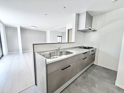 ■□■キッチン■□■システムキッチン新規交換】人気のカウンターキッチンでご家族の様子をみながら家事をすることができます♪三口ガスコンロで火力が分かりやすくお料理もはかどります☆