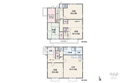 間取りは延床面積124.21平米の4LDK。全居室6帖以上の広さが確保されたプラン。1階のLDKと洋室の間仕切りを開放すれば、リビングをより広く使うことができます。