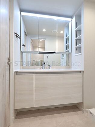 収納力と実用性を兼ね備えた三面鏡付き洗面台