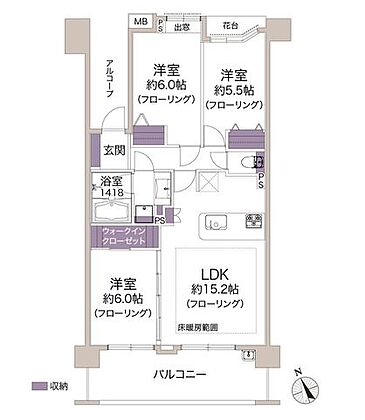 奥行きもあり、洗濯物も沢山干せるゆとりあるバルコニー
