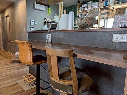 カウンターキッチンコンセント付きでスマホの充電もできて便利!