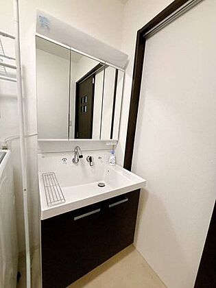 三面鏡の洗面台で、すっきり片付いて見えますね♪