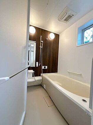 風呂場の前、脱衣所奥には、タオルや着替えを収納しやすい可動式の棚がございますので、収納するものにより、棚の高さをかえられます(^^♪