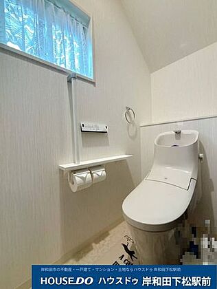 白くて清潔感のあるトイレで、棚もあるので、収納に便利?