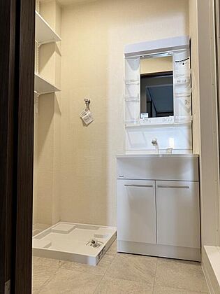 【洗面所】高さ調整の出来る便利な可動棚付!