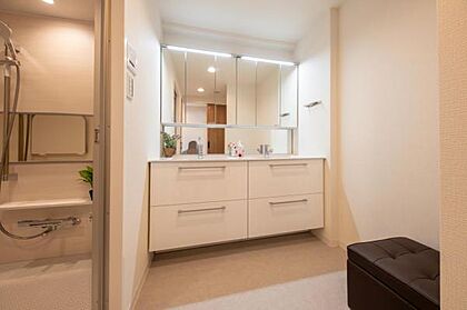 ■サニタリースペース/こちらの洗面化粧台はツーボウルタイプとなっておりますので、朝の忙しい時間でも、効率よく準備を進めることができますね